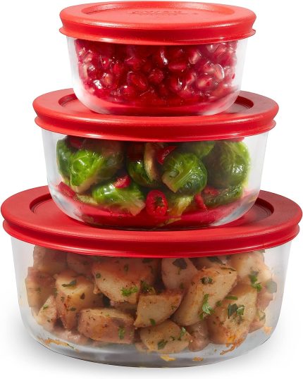 Pyrex Simply Store 6-PC Large Glass Food Storage Containers Set, Snug Fit Non-Toxic Plastic BPA-Free Lids, Freezer Dishwasher Microwave Safe $20.00